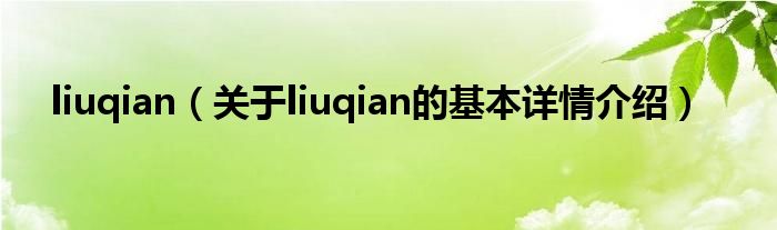 本文关于liuqian的基本详情介绍就讲解完毕,希望对大家有所帮助。