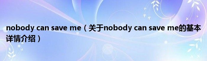 nobody can save me(关于nobody can save me的基本详情介绍)