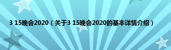 本文关于3 15晚会2020的基本详情介绍就讲解完毕,希望对大家有所帮助。