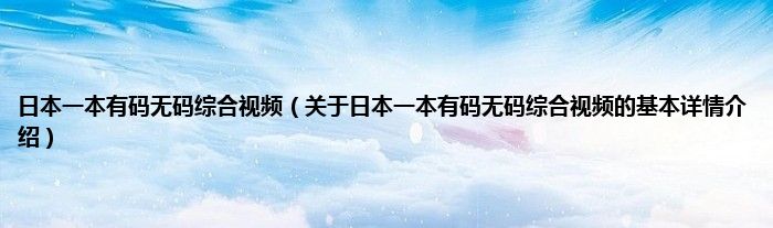 日本一本有码无码综合视频(关于日本一本有码无码综合视频的基本详情介绍)