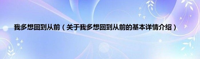 本文关于我多想回到从前的基本详情介绍就讲解完毕,希望对大家有所帮助。