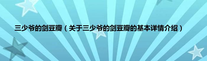 三少爷的剑豆瓣(关于三少爷的剑豆瓣的基本详情介绍)