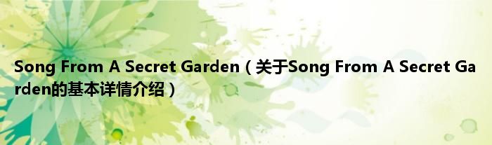 本文关于Song From A Secret Garden的基本详情介绍就讲解完毕,希望对大家有所帮助。