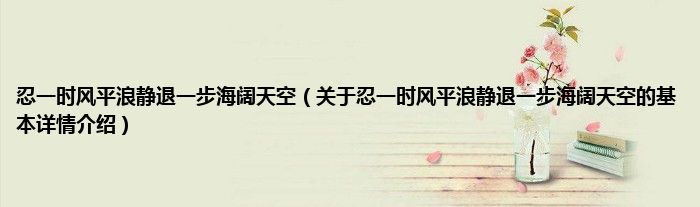 忍一时风平浪静退一步海阔天空(关于忍一时风平浪静退一步海阔天空的基本详情介绍)