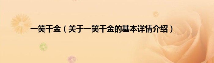 本文关于一笑千金的基本详情介绍就讲解完毕,希望对大家有所帮助。