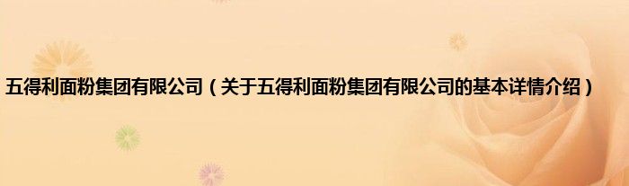 本文关于五得利面粉集团有限公司的基本详情介绍就讲解完毕,希望对大家有所帮助。