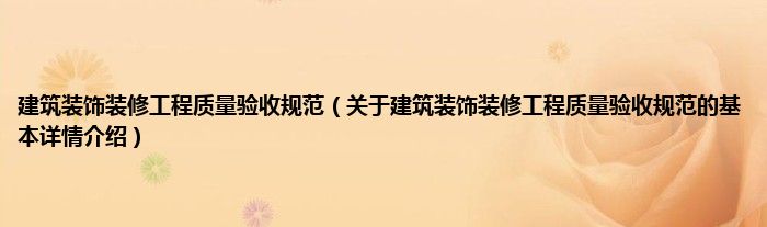 建筑装饰装修工程质量验收规范(关于建筑装饰装修工程质量验收规范的基本详情介绍)