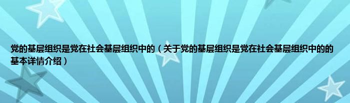 本文关于党的基层组织是党在社会基层组织中的的基本详情介绍就讲解完毕,希望对大家有所帮助。