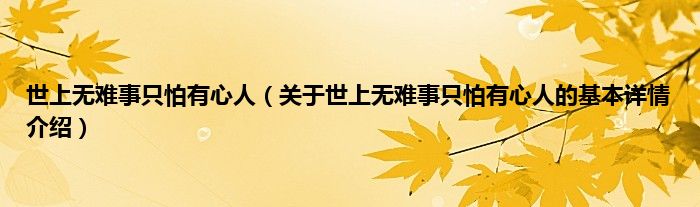 本文关于世上无难事只怕有心人的基本详情介绍就讲解完毕,希望对大家有所帮助。