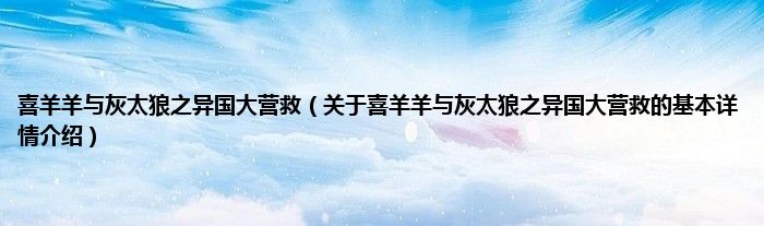 本文关于喜羊羊与灰太狼之异国大营救的基本详情介绍就讲解完毕,希望对大家有所帮助。