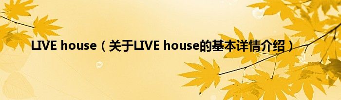 本文关于LIVE house的基本详情介绍就讲解完毕,希望对大家有所帮助。