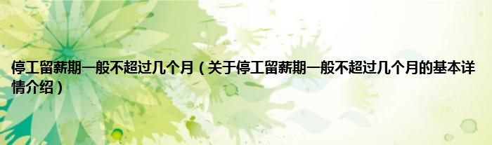 本文关于停工留薪期一般不超过几个月的基本详情介绍就讲解完毕,希望对大家有所帮助。