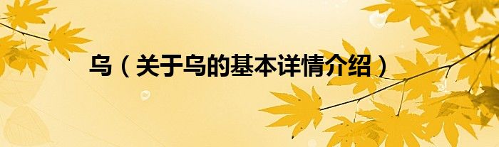 本文关于乌的基本详情介绍就讲解完毕,希望对大家有所帮助。