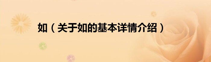 本文关于如的基本详情介绍就讲解完毕,希望对大家有所帮助。