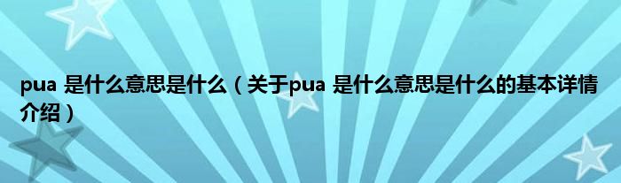 本文关于pua 是什么意思是什么的基本详情介绍就讲解完毕,希望对大家有所帮助。