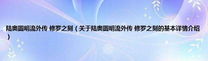 本文关于陆奥圆明流外传 修罗之刻的基本详情介绍就讲解完毕,希望对大家有所帮助。