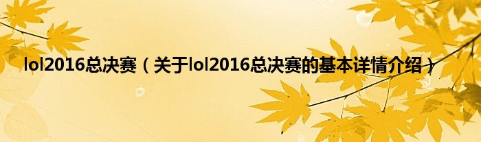 本文关于lol2016总决赛的基本详情介绍就讲解完毕,希望对大家有所帮助。