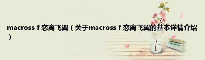 本文关于macross f 恋离飞翼的基本详情介绍就讲解完毕,希望对大家有所帮助。
