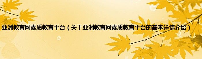 本文关于亚洲教育网素质教育平台的基本详情介绍就讲解完毕,希望对大家有所帮助。