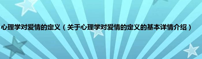 本文关于心理学对爱情的定义的基本详情介绍就讲解完毕,希望对大家有所帮助。