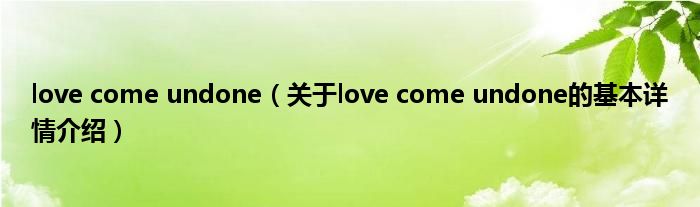 本文关于love come undone的基本详情介绍就讲解完毕,希望对大家有所帮助。