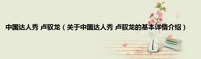 本文关于中国达人秀 卢驭龙的基本详情介绍就讲解完毕,希望对大家有所帮助。