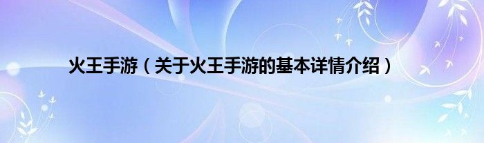本文关于火王手游的基本详情介绍就讲解完毕,希望对大家有所帮助。