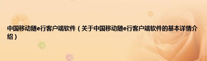 中国移动随e行客户端软件(关于中国移动随e行客户端软件的基本详情介绍)