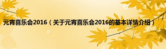 元宵喜乐会2016(关于元宵喜乐会2016的基本详情介绍)