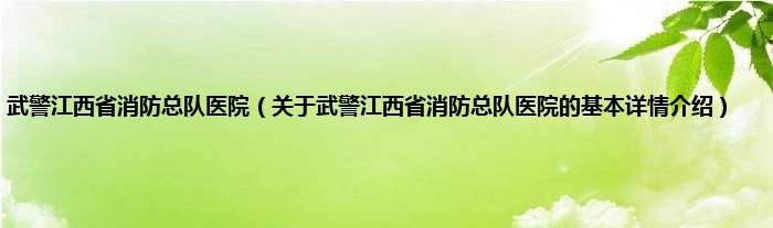 本文关于武警江西省消防总队医院的基本详情介绍就讲解完毕,希望对大家有所帮助。