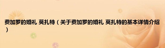 本文关于费加罗的婚礼 莫扎特的基本详情介绍就讲解完毕,希望对大家有所帮助。