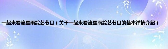 一起来看流星雨综艺节目(关于一起来看流星雨综艺节目的基本详情介绍)