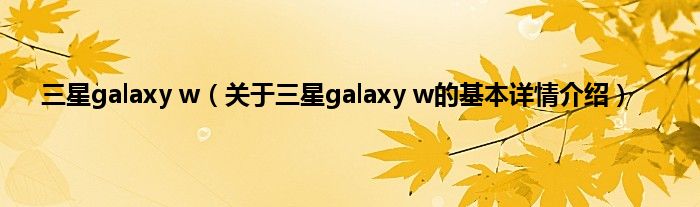 三星galaxy w(关于三星galaxy w的基本详情介绍)