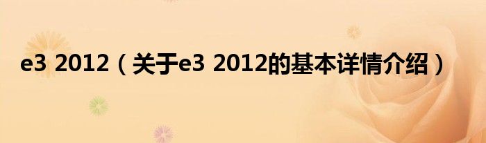大家好我是小蝌蚪,e3 2012,关于e3 2012的基本详情介绍很多人还不知道,那么现在让我们一起来看看吧!
