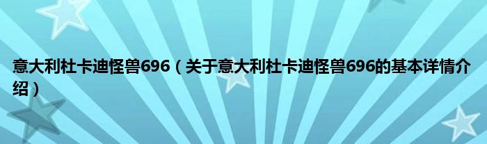本文关于意大利杜卡迪怪兽696的基本详情介绍就讲解完毕,希望对大家有所帮助。