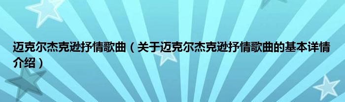本文关于迈克尔杰克逊抒情歌曲的基本详情介绍就讲解完毕,希望对大家有所帮助。