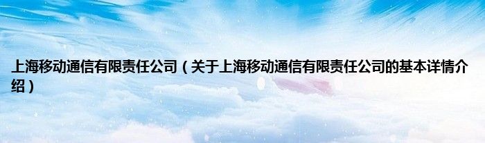 本文关于上海移动通信有限责任公司的基本详情介绍就讲解完毕,希望对大家有所帮助。