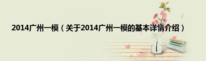 本文关于2014广州一模的基本详情介绍就讲解完毕,希望对大家有所帮助。