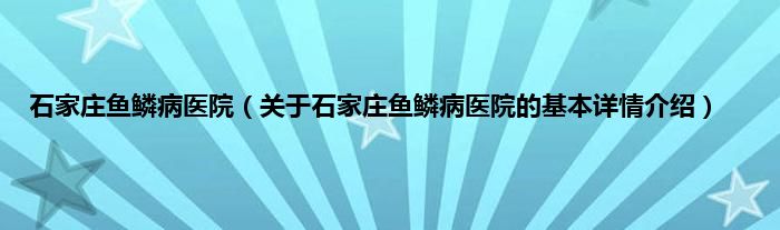 本文关于石家庄鱼鳞病医院的基本详情介绍就讲解完毕,希望对大家有所帮助。