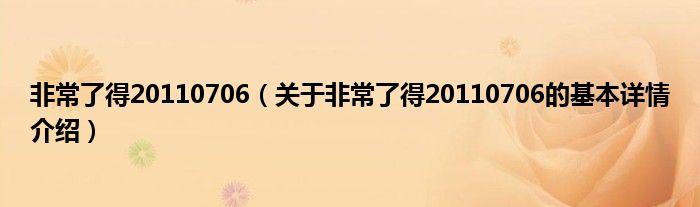 非常了得20110706(关于非常了得20110706的基本详情介绍)