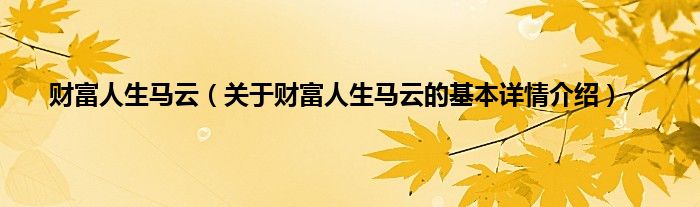本文关于财富人生马云的基本详情介绍就讲解完毕,希望对大家有所帮助。