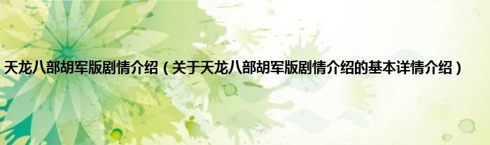 本文关于天龙八部胡军版剧情介绍的基本详情介绍就讲解完毕,希望对大家有所帮助。