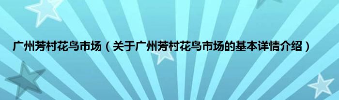 本文关于广州芳村花鸟市场的基本详情介绍就讲解完毕,希望对大家有所帮助。