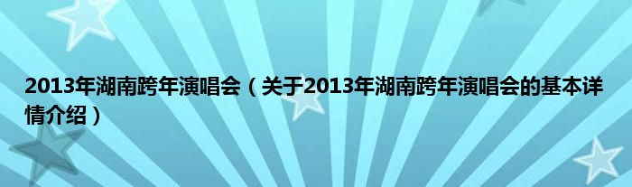 本文关于2013年湖南跨年演唱会的基本详情介绍就讲解完毕,希望对大家有所帮助。