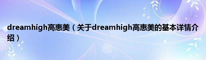 本文关于dreamhigh高惠美的基本详情介绍就讲解完毕,希望对大家有所帮助。