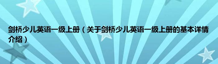 剑桥少儿英语一级上册(关于剑桥少儿英语一级上册的基本详情介绍)