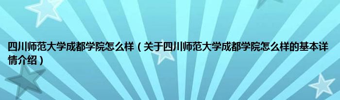 本文关于四川师范大学成都学院怎么样的基本详情介绍就讲解完毕,希望对大家有所帮助。