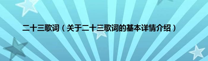 二十三歌词(关于二十三歌词的基本详情介绍)