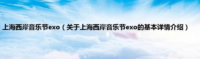 上海西岸音乐节exo(关于上海西岸音乐节exo的基本详情介绍)
