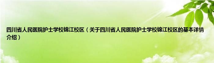 本文关于四川省人民医院护士学校锦江校区的基本详情介绍就讲解完毕,希望对大家有所帮助。